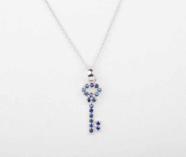 Handcrafted in 925 silver, this Key charm is studded with Sapphires all over.