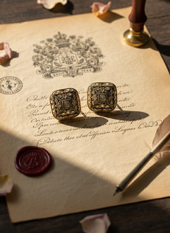 Handcrafted in 92.5 silver these earrings are 22kt gold plated with Semi Precious Polki and gemstone setting.